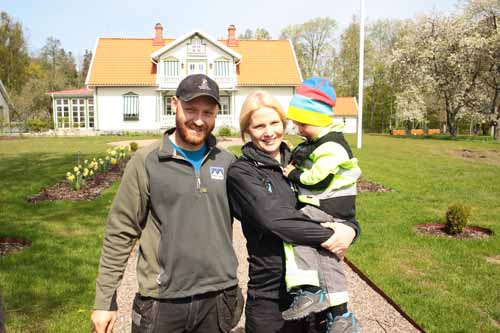 Petter, Maria och Hugo Jansson framför släktgården.